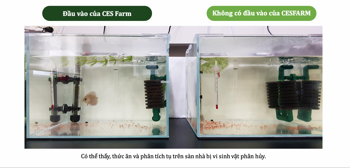 Ngoài ra, mùi hôi thối xảy ra khi tảo thối lan sang màu xanh lá cây. Nếu CESFARM được phun ở đây, bùn hữu cơ liên tục bị phân hủy khi Bacillus phát triển.